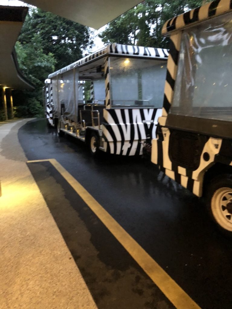 そしていよいよ、ナイトサファリツアーへ!こんな感じの動物をモチーフにしたバスに乗ってのツアーでした!