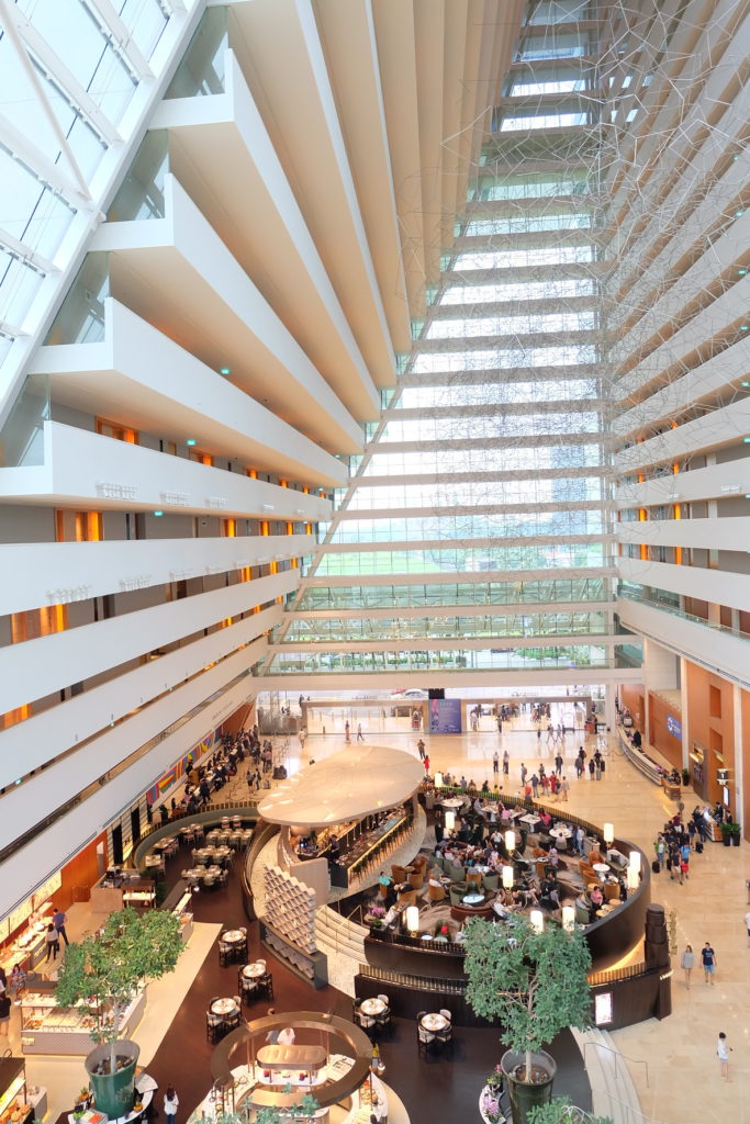 ガーデンズハイベイのあとは、マリーナベイサンズヘ。宿泊はしていませんが、中には入ることができました。ロビーはこんな感じです。外の様子が良く見えて、天井も高くてすごく開放的ですね!おしゃれなカフェもありました😊外から見るだけでも十分きれいですが、実際に宿泊してみるのもやっぱり憧れますよね!