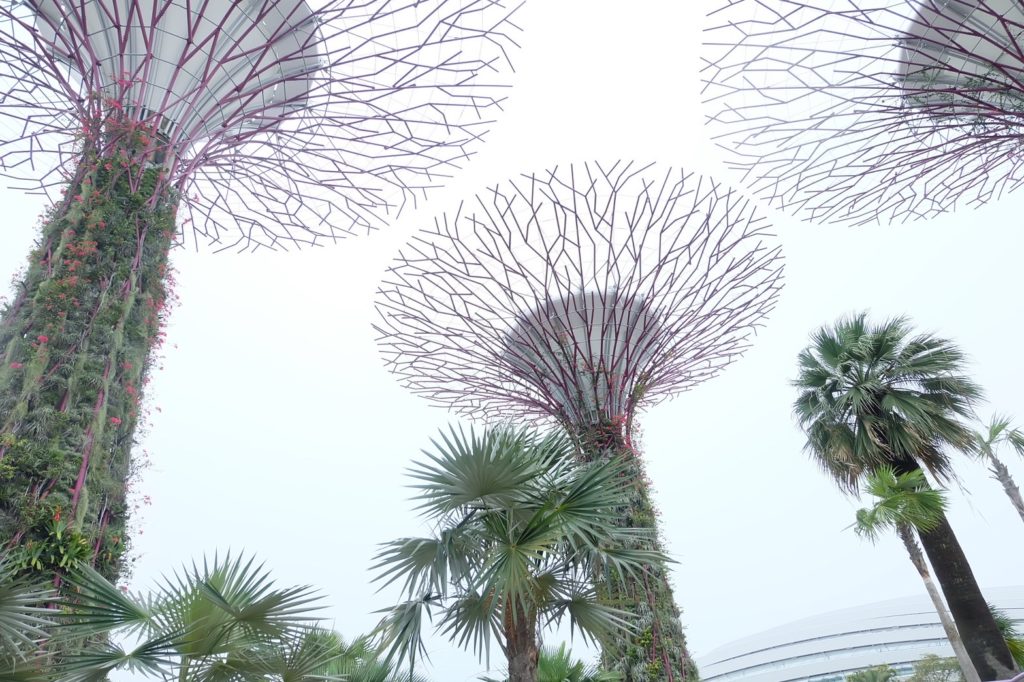 スーパーツリー・グローブはシンガポールの国花「バンダ・ミス ジョアキム」をコンセプトとしたスーパーツリーです。近代的な建物と自然が融合された新しい植物園ですねよね!この日は小雨がぱらついていて、傘をさしながらの散策でしたが、想像よりも大きくて綺麗でした!晴れていたらもっときれいなんだろうな~。夜になるとライトアップされ、きれいなイルミネーションショーも楽しめるみたいです。
